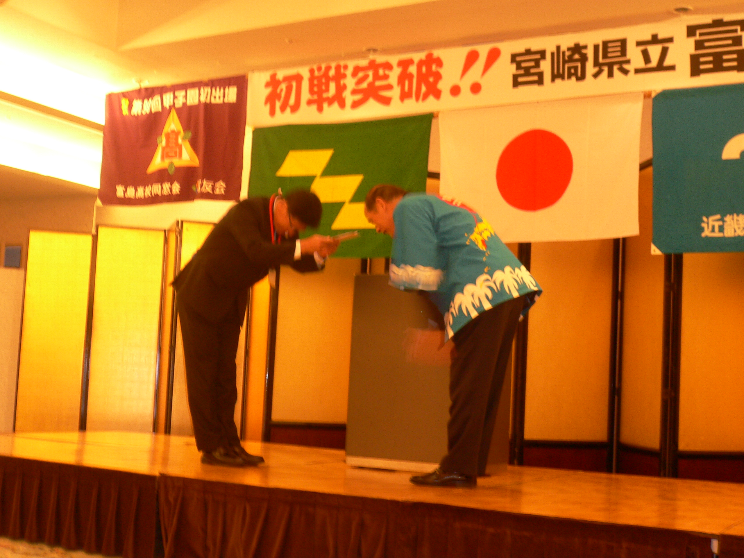 第2部の懇親会は、富島高校と延岡学園の先生、各団体、県人会等と合同にて懇親して、甲子園での試合応援を約束して散会しました。