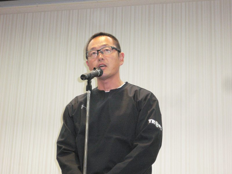 写真12~13、ラクビー部OB会長・石田喜克様とラクビー部監督・檜室秀幸様から挨拶及び報告