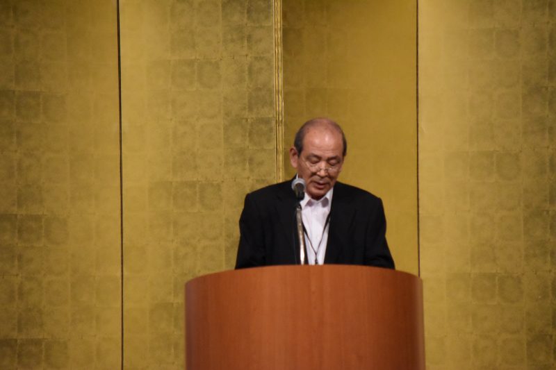 2,総会は、太田浩子さんと都城市出身の竹間美喜夫さんの司会進行により、物故者方などに対して黙祷を行いました。そして貫安利・会長の開会及び会長挨拶に続いてご来賓の宮崎県知事・河野俊嗣様、宮崎県議会議長・丸山裕次郎様、宮崎県経済農業協同組合連合会代表理事長・新森雄吾様の祝辞をいただきました。