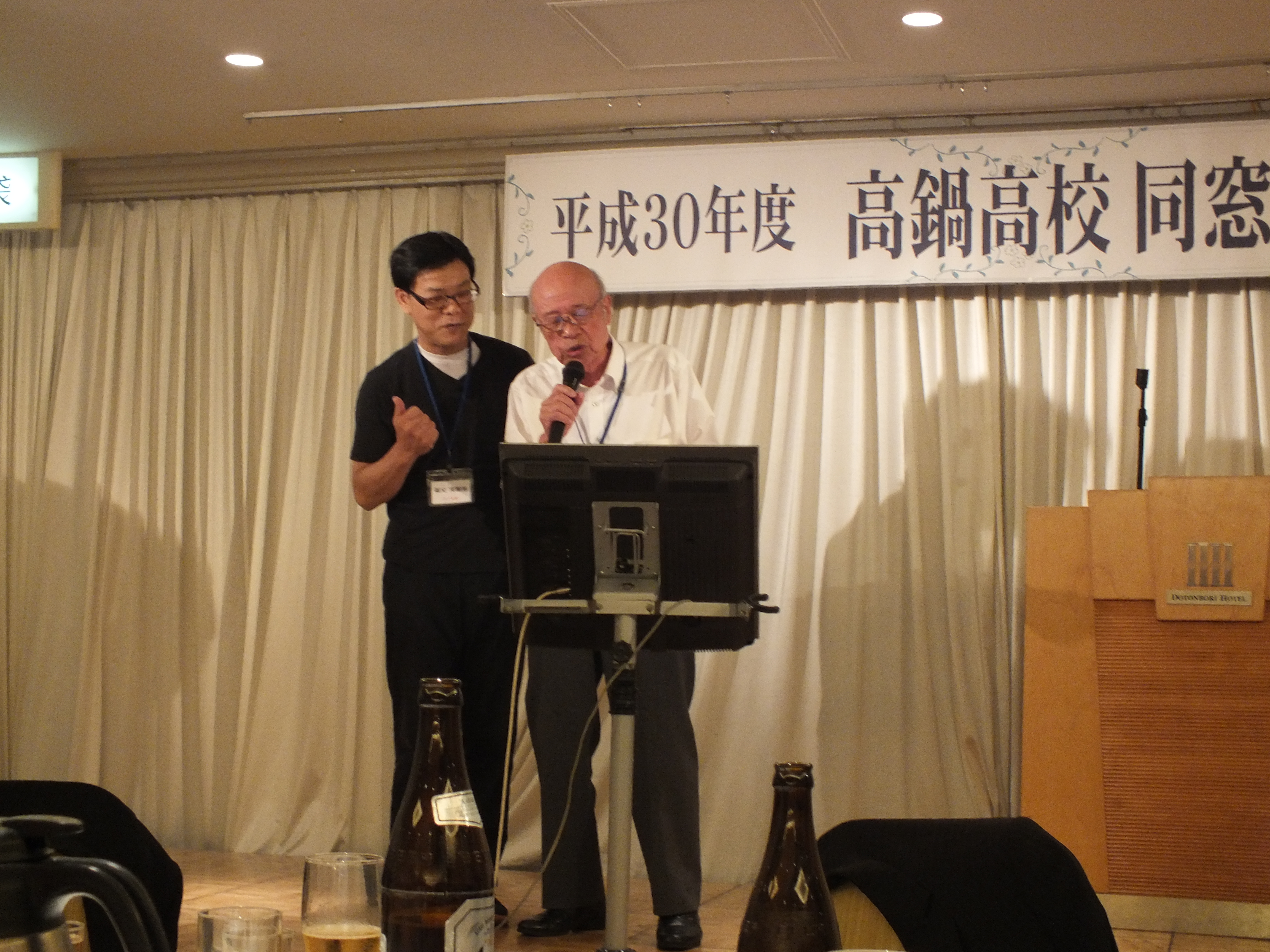 総会は黒木康副会長の司会のもと、今年1月に亡くなられたS25年卒・飛田敏隆氏(前近畿宮崎県人会会長)をはじめとする物故者への黙祷から始まり、都留公平会長の挨拶に続いて来賓挨拶として、鳴海ケ丘会・増田秀文会長、高鍋高校・児玉康裕校長、近畿宮崎県人会・鬼束禎副会長、高鍋町・黒木敏之町長の4人が挨拶をされました。議事は井川恭子事務局長により29年度事業報告及び会計報告、30年度の事業計画及び予算案で、会計監査報告は織田美和子監事により報告され、拍手で可決されました。