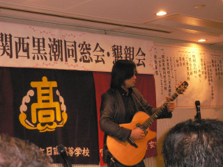 第2部の懇親会は、日南商工会議所会頭・清水満雄様から祝辞を頂きました。、黒潮同窓会事務局長・黒岩保雄様の乾杯で始まり、Miss Chi様、ギターリスト・居倉健様により日本抒情歌・ギター演奏をたっぷり聞かせて頂きました。