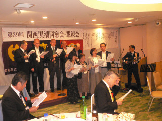 写真17、関西黒潮同窓会の歌「出会い」「ふるさと」と校歌斉唱